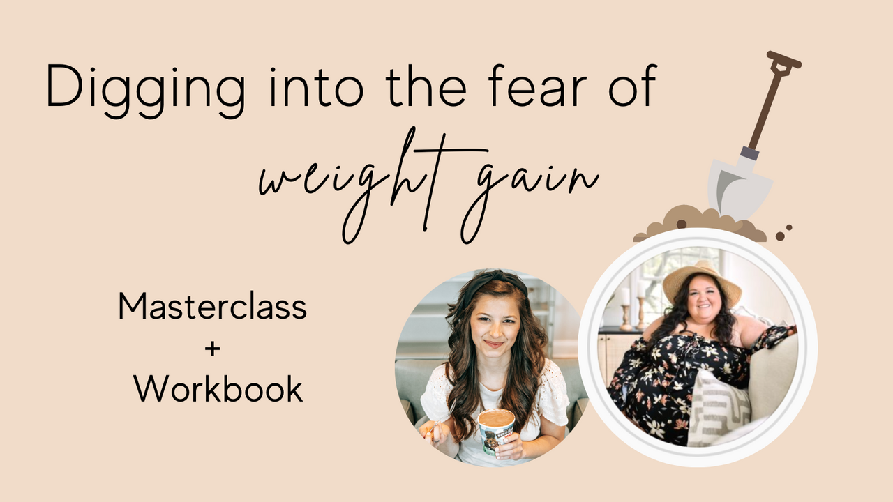 This masterclass + workbook will help jump start the "dig" into why you fear weight gain and give you strategies in order to move through your fears. That way the fear of weight gain can no longer stop you from a life at peace with food and your body.